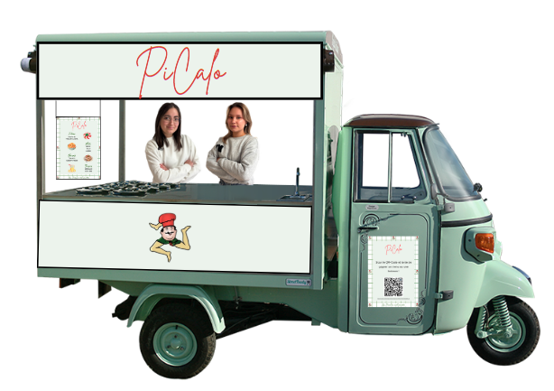 Bienvenue chez PiCalo, le food truck sicilien qui allie tradition, qualité et générosité. Nous sommes Léa et Elena, deux entrepreneuses passionnées par la cuisine et par nos racines siciliennes. À bord de notre triporteur, nous vous proposons des plats inspirés de notre village natal, Casteltermini, préparés avec des produits locaux, biologiques et pleins d’amour.